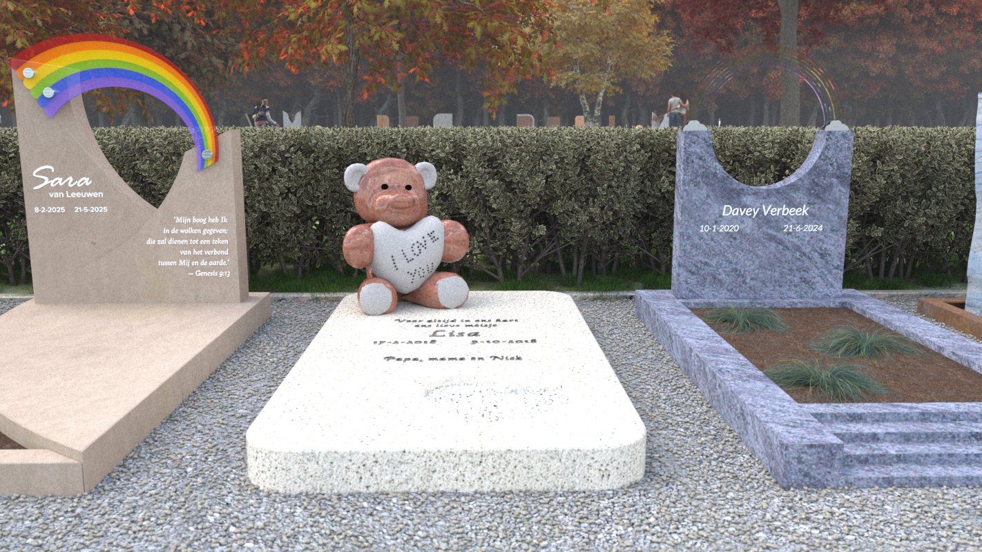 Een kindergrafsteen is een liefdevolle herinnering aan een jong leven. De steen kan speelse vormen en zachte lijnen hebben, zoals een hart, ster of vlinder. Ook een eigen ontwerp is mogelijk.
