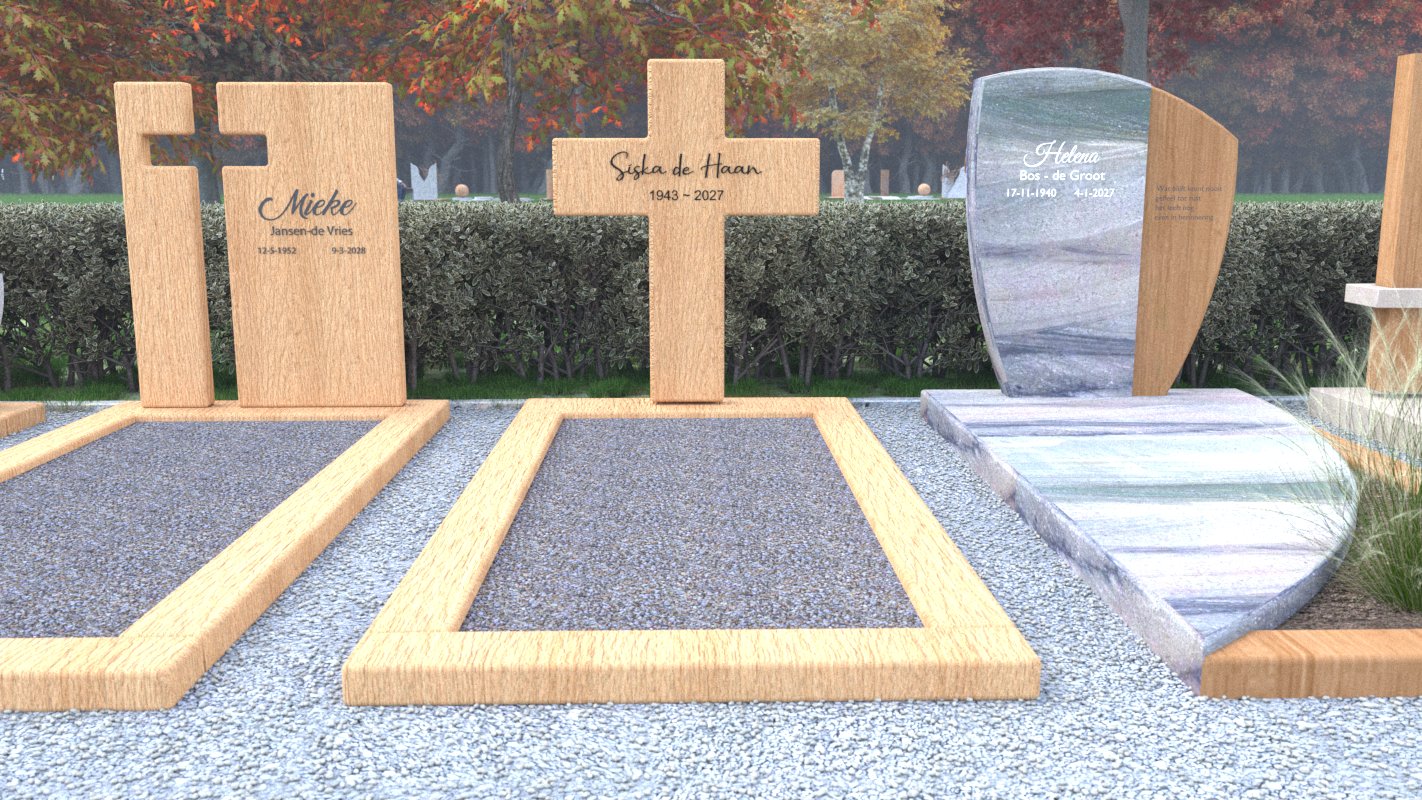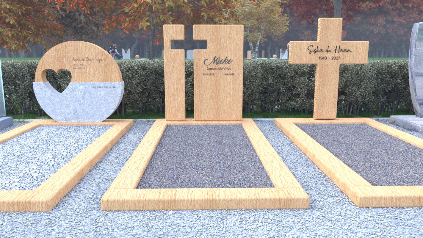 De meest natuurlijke uitstraling krijgt het monument voor uw dierbare als u kiest voor hout. Vaak zijn begraafplaatsen plekken met veel groen. Een houten grafmonument past perfect in die omgeving.