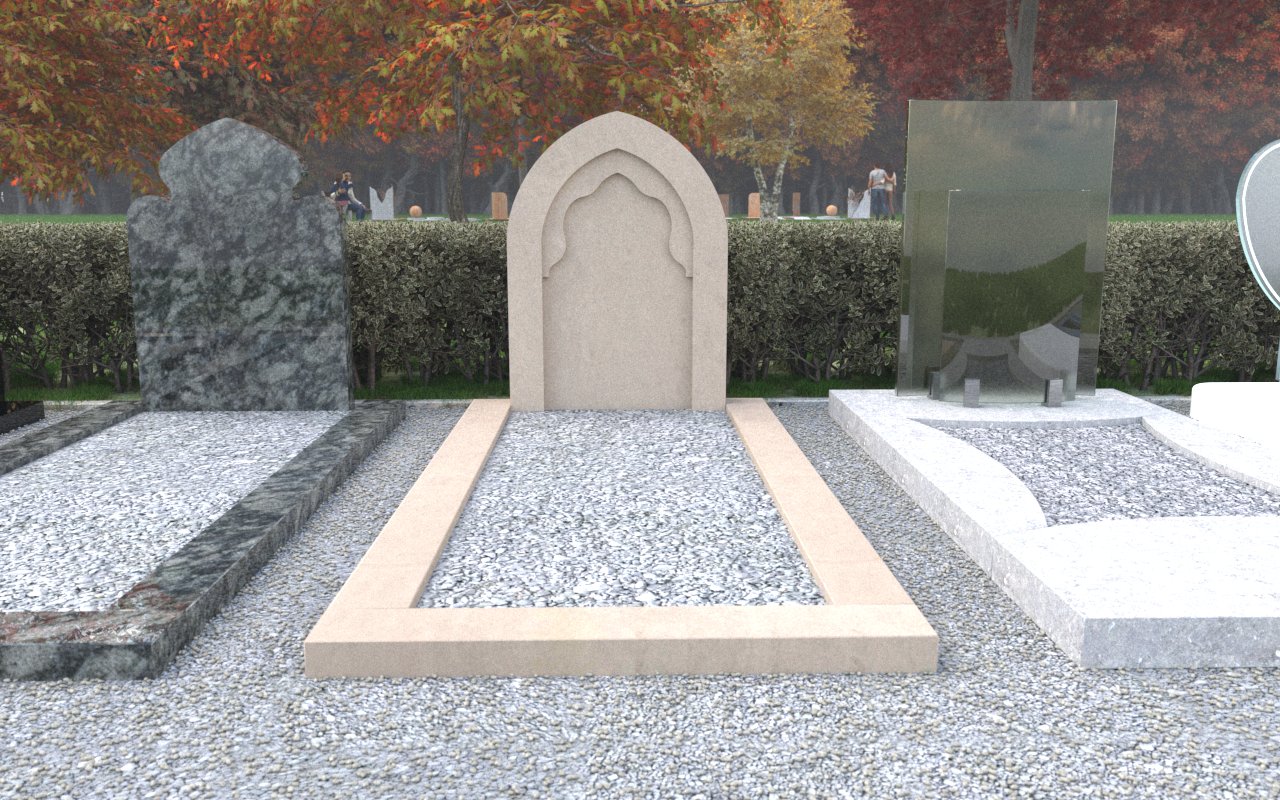 Een islamitische grafsteen is vaak eenvoudig en gericht op respect en bescheidenheid. Veelvoorkomende elementen zijn Arabische kalligrafie, een gebedsinscriptie of een verwijzing naar Mekka.