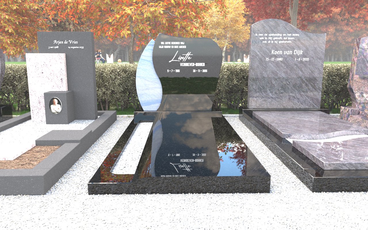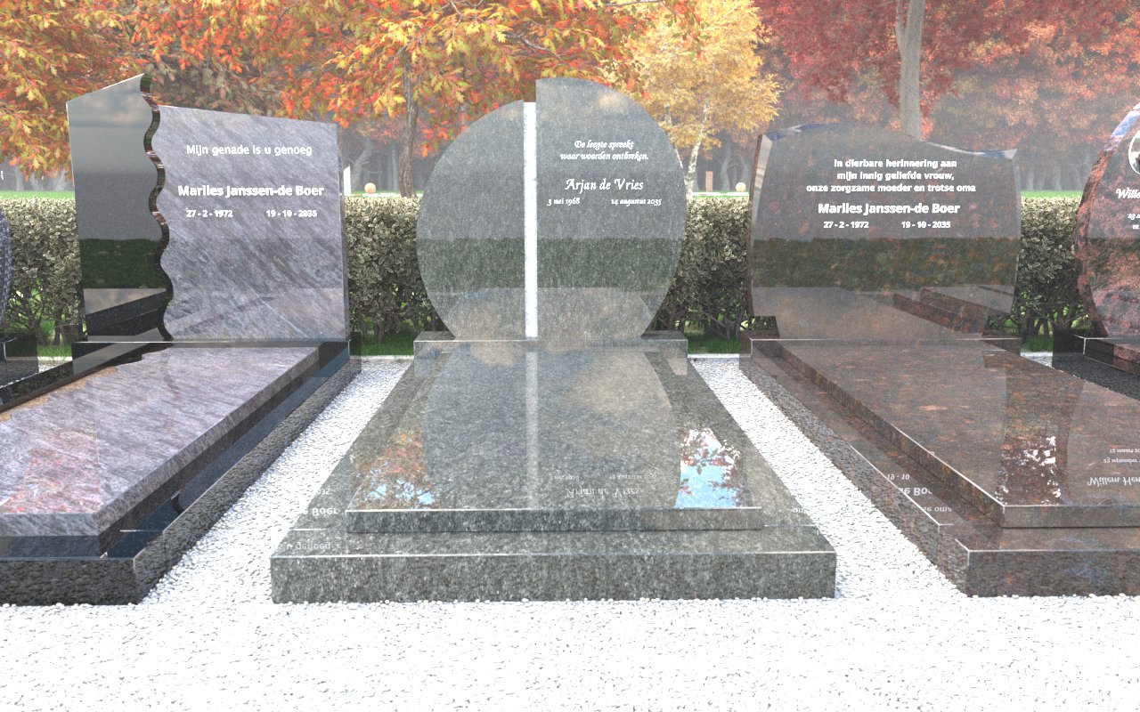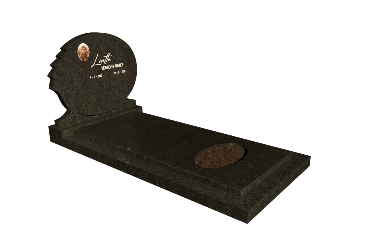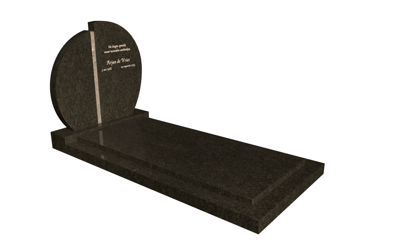 Zachte vormen en vloeiende lijnen geven een ronde grafsteen een bijzondere uitstraling. Deze stijl straalt rust en harmonie uit en is mogelijk in diverse steensoorten.