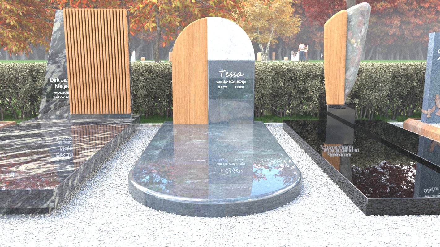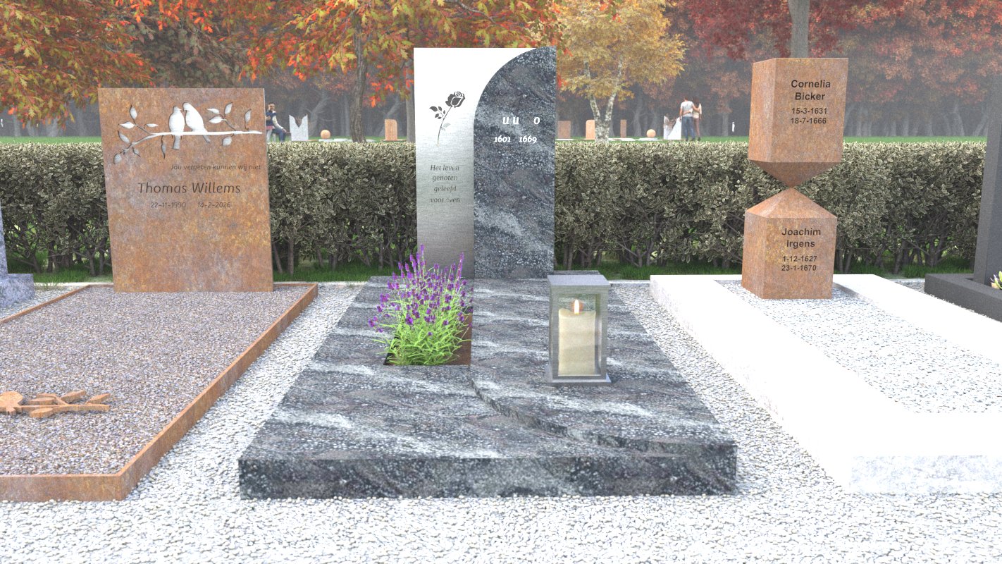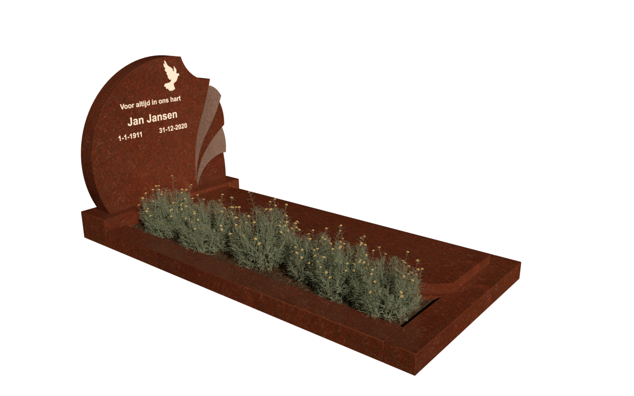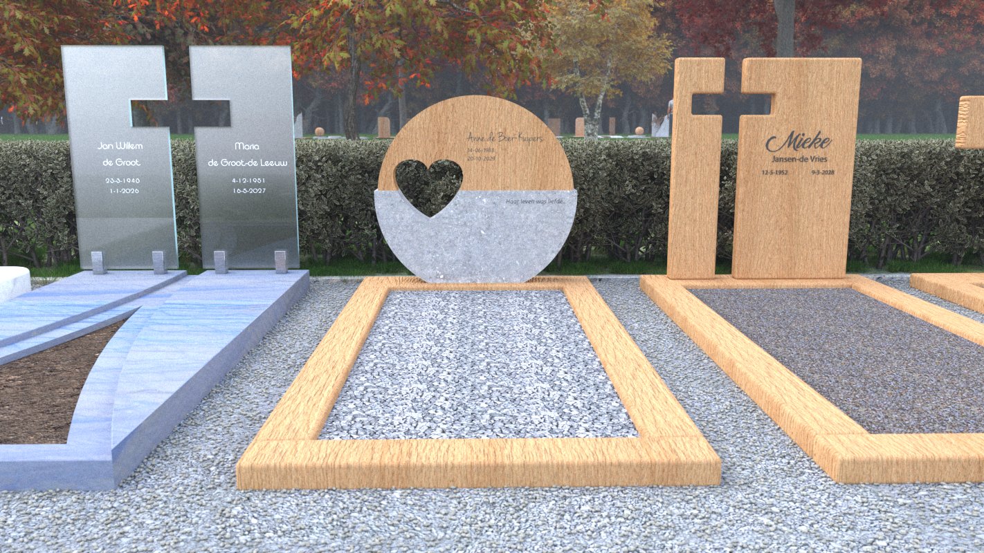 Zachte vormen en vloeiende lijnen geven een ronde grafsteen een bijzondere uitstraling. Deze stijl straalt rust en harmonie uit en is mogelijk in diverse steensoorten.