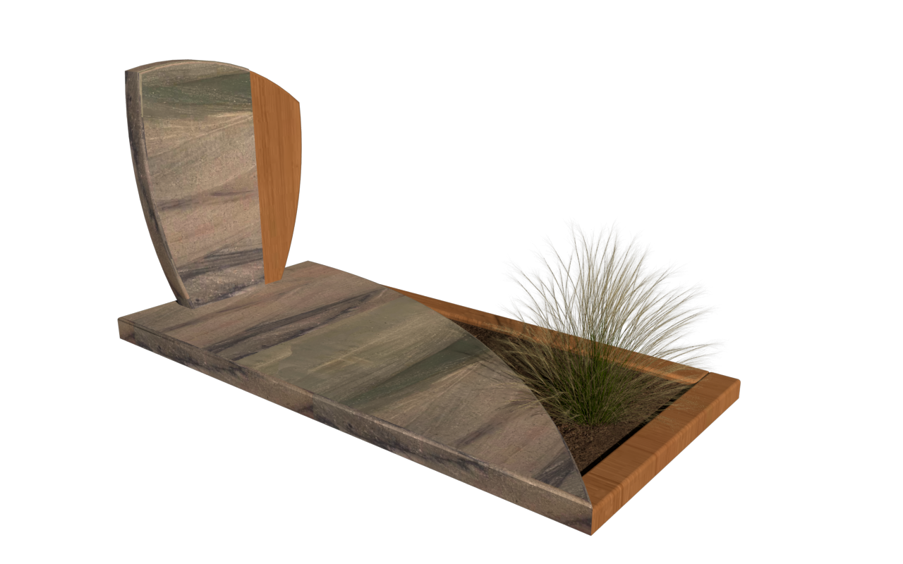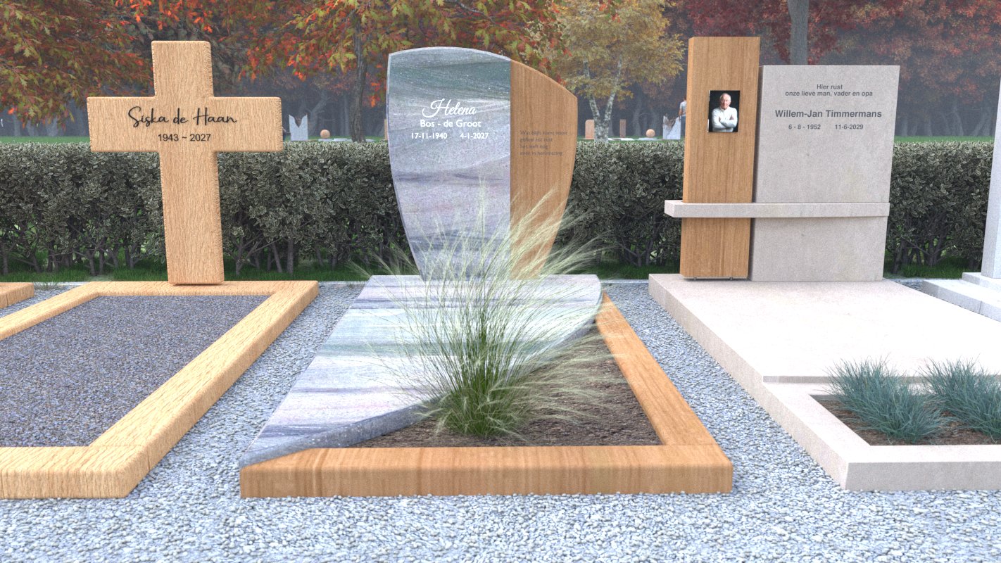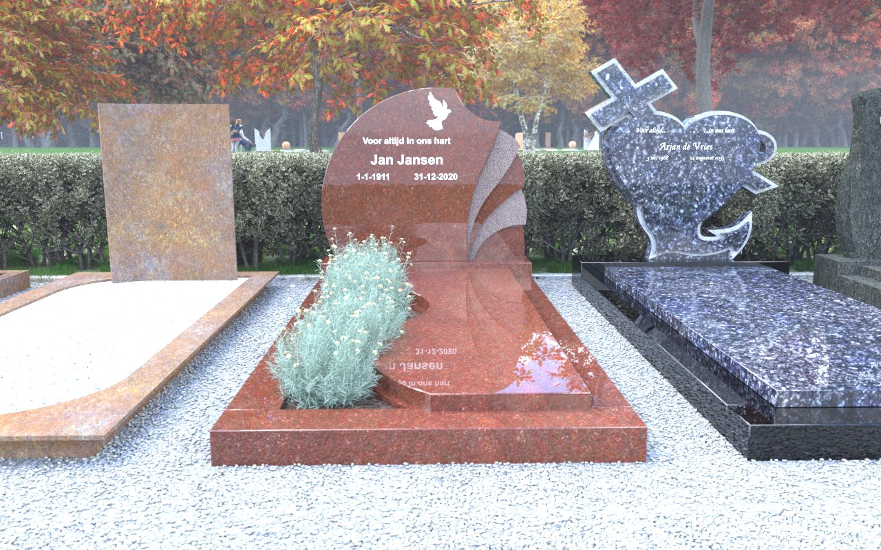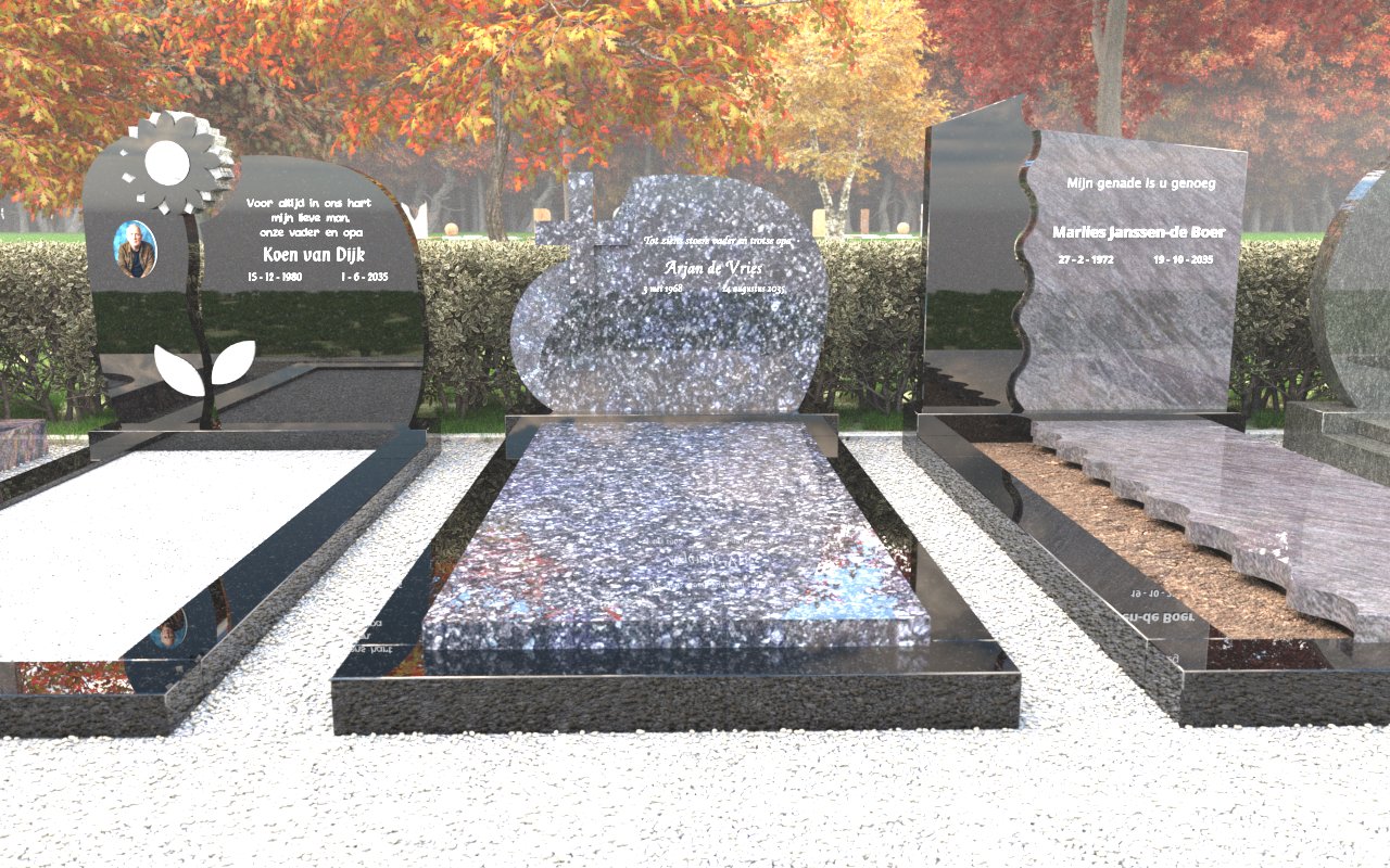 Zachte vormen en vloeiende lijnen geven een ronde grafsteen een bijzondere uitstraling. Deze stijl straalt rust en harmonie uit en is mogelijk in diverse steensoorten.